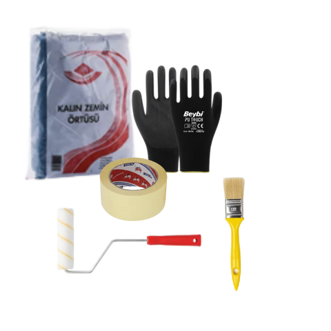 Kalın zemin örtüsü 20m2polyerter eldiven 1 çift48 mm maskeleme bandıno:1 kestirme fırçasaten parmak rulo 10cm