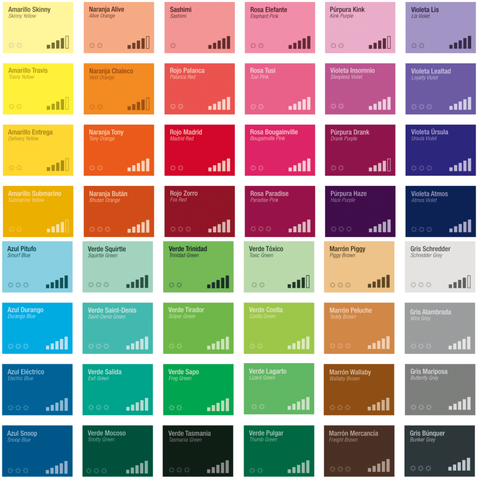 Az çoktur. VICE renk kartelası yalnızca 50 tona indirgenmiştir — yine de en cesur graffiti yazarlarının tüm renk ihtiyaçlarını karşılayan, özenle seçilmiş dar bir yelpaze.