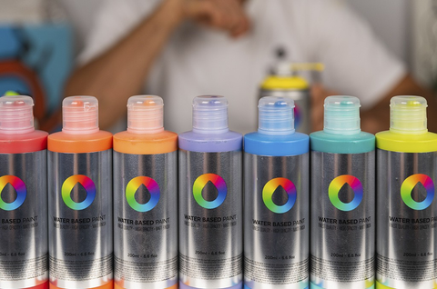 MTN Su Bazlı Boya, yalnızca kalemleri doldurmak için değil, aynı zamanda boya fırçası, Dabber veya airbrush gibi diğer tekniklerle de uygulanabilen yüksek kaliteli bir boyadır.